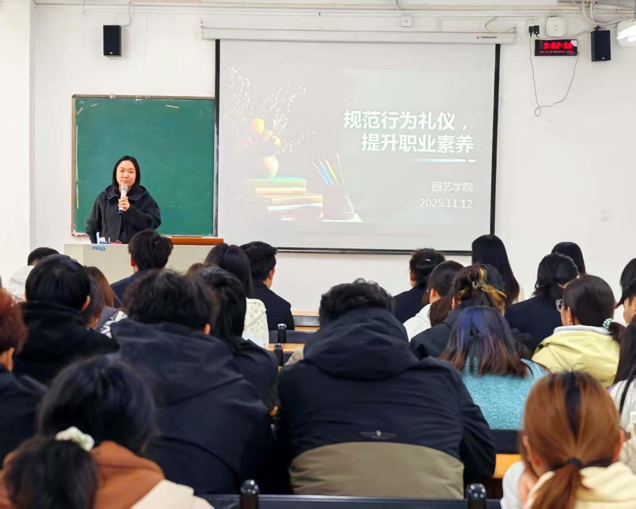 为帮助2026届毕业生提前熟悉职场规范,提升就业竞争力,实现从校园到职场的自信跨越,促进我院毕业生高质量就业。2025年11月12日,园艺学院特邀旅游学院团委书记王芳开展“规范行为礼仪,提升职业素养”专题培训,2026届毕业生代表参与此次培训。培训由园艺学院党委副书记孙琳苒主持。