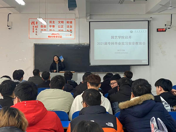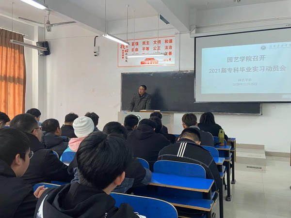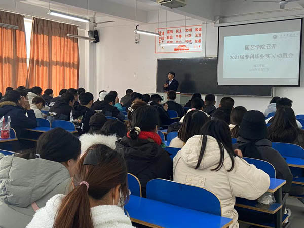 为确保2021届毕业生实习工作安全有序开展,增强学生实习期间的安全和责任意识,12月25日下午在1教A103召开专科毕业生实习动员会。园艺学院院长龚守富、副书记陈丽文、副院长刘松虎,教学秘书申君,辅导员任毛飞、蒋丹青及2021届122名专科毕业生动员会。会议由副院长刘松虎主持。