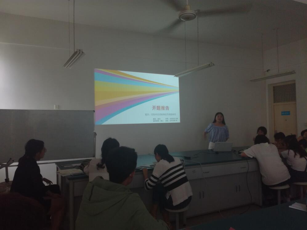 本次毕业论文(设计)开题报告会分六个组在不同的实验室进行,每位学生都准备了PPT汇报,20余名评审教师及2014级所有本科生参加了开题报告会。会上,2014级园艺专业的学生依次从选题意义、背景及可行性分析、调研报告、研究方案、实施计划、预期结果、参考文献等以幻灯片的形式作了开题汇报。各组评委教师认真听取了每位学生的报告,并针对试验设计、技术路线、取材注意事项、试验过程照片留存、数据采集、PPT格式等方面提出了科学合理化的建议和意见。