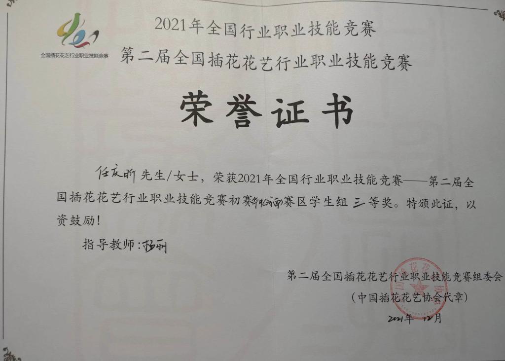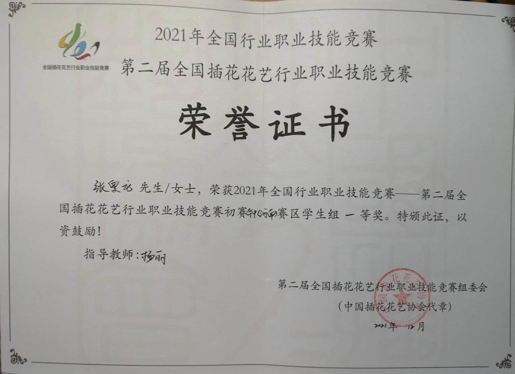 2021年12月27日-12月29日,我院杨丽老师带领四位同学参加在郑州市举办的全国行业职业技能大赛华中赛区选拔赛。为深入贯彻落实习近平总书记对技能人才工作的系列重要指示精神,迎接上海第46届世界技能大赛,大力弘扬劳模精神、劳动精神、工匠精神,激励广大院校师生和插花花艺行业从业者学习理论知识、提升技能水平,加快培养高素质劳动者和高技能人才,促进插花花艺行业健康持续发展,根据人力资源社会保障部关于组织开展2021年全国行业职业技能竞赛的部署要求,中国插花花艺协会、中国就业培训技术指导中心、国家花卉工程技术研究中心将共同主办2021年全国行业职业技能竞赛——第三届全国插花花艺行业职业技能竞赛,北京林业大学、中国花卉协会、中国风景园林学会、国家花卉产业技术创新战略联盟共同支持。