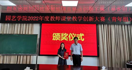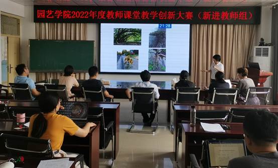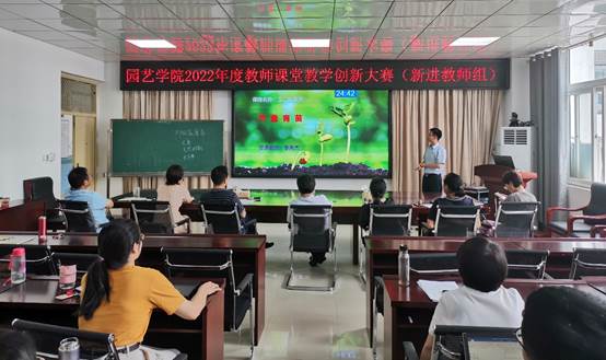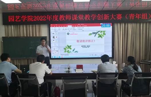 为鼓励教师更新课堂教学观念,聚焦教学创新,推动教学革命,不断提高教学创新能力,引导教师潜心教书育人,强化课程思政,全面提高教育教学质量,园艺学院分别于6月10和13日在实验楼2A322举办2022年度教学课堂教学创新大赛--新进教师组和青年组,由副校长赵一鹏、学院全体班子成员、教研室主任和教师代表张琰和冯志敏担任竞赛评委。园艺学院全体教师参加,新进教师组和青年教师组分别由教研室副主任王亚坤和蔡东升主持。