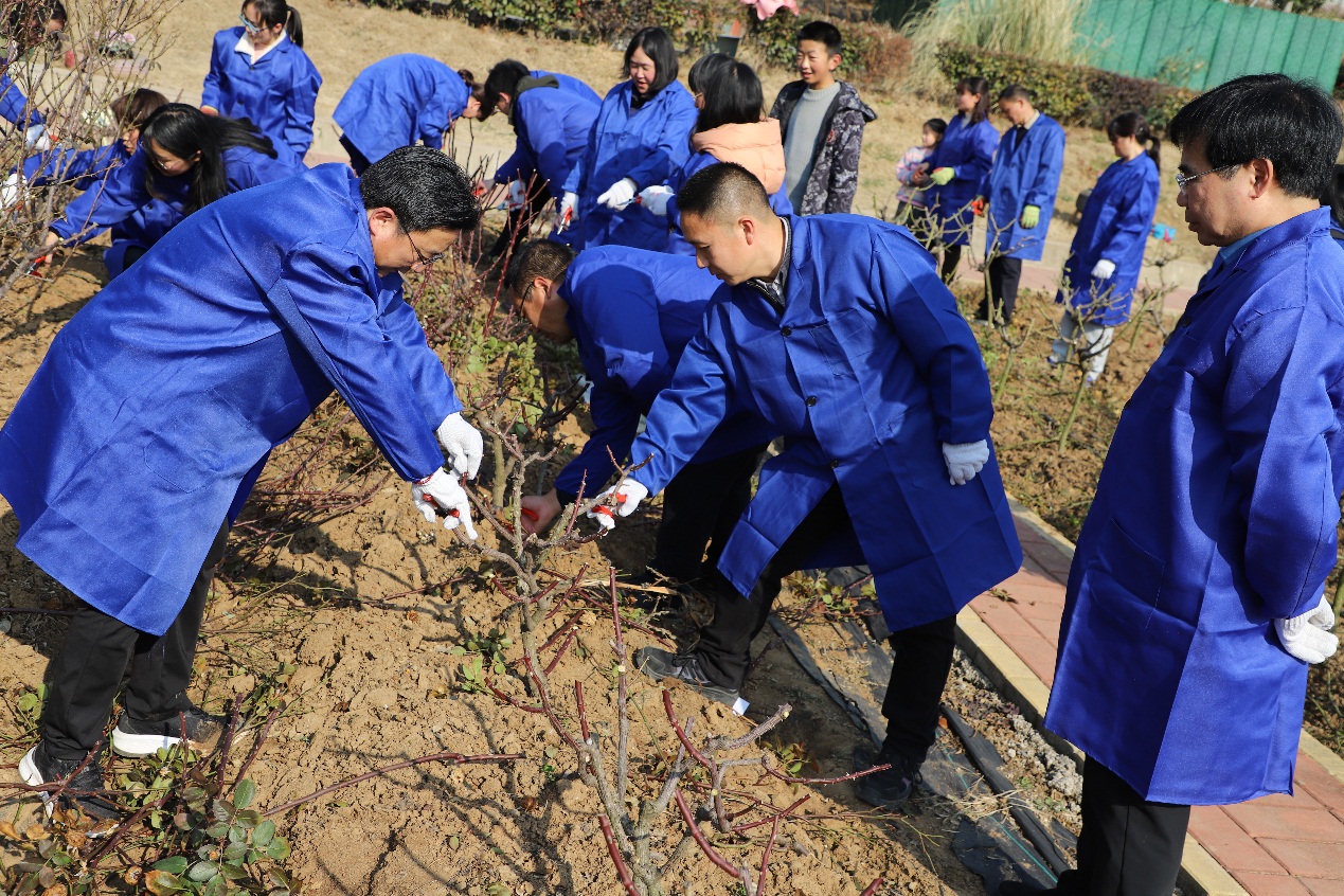 教师对200余株14个品种月季进行修剪