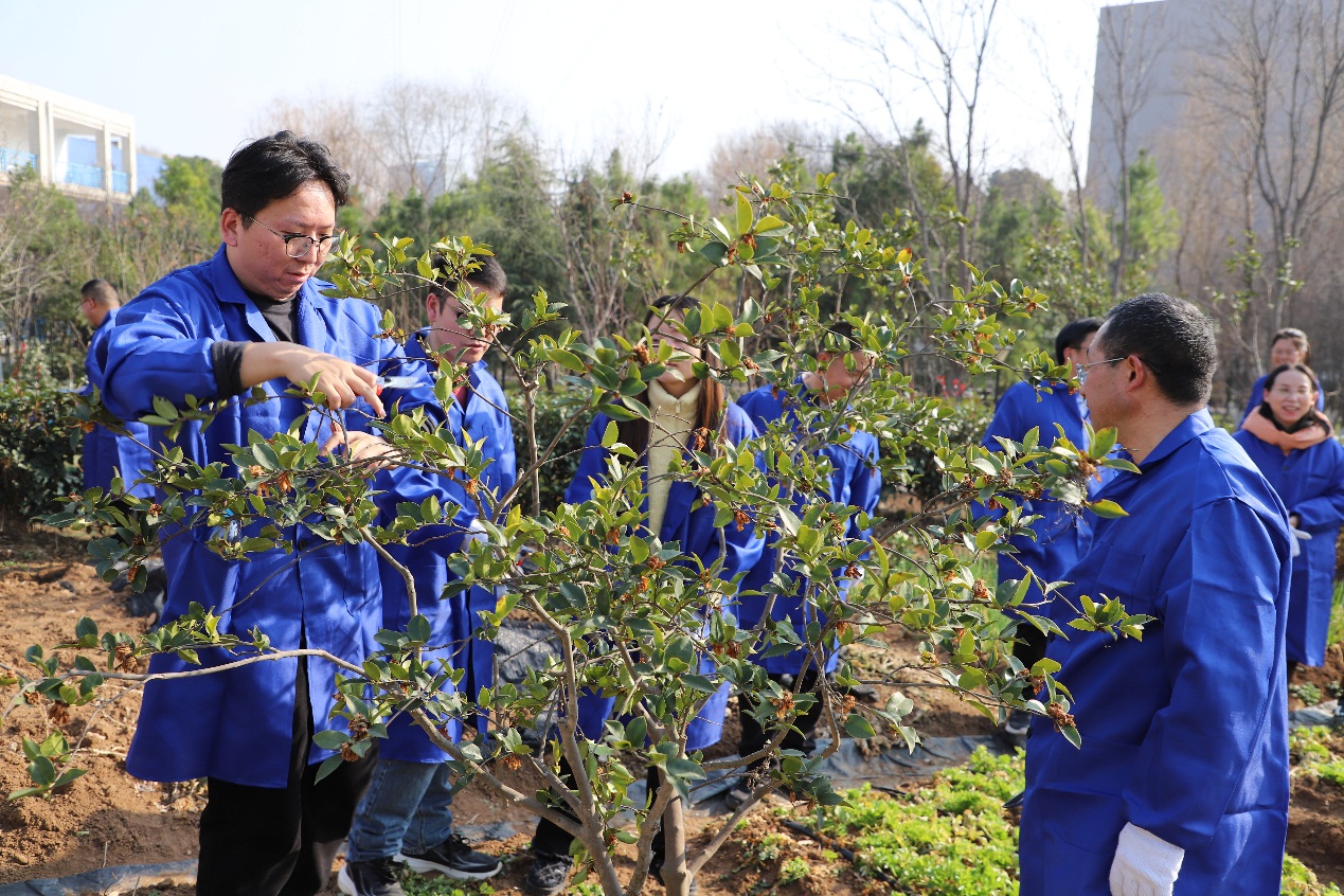 教师对60株油茶进行修剪