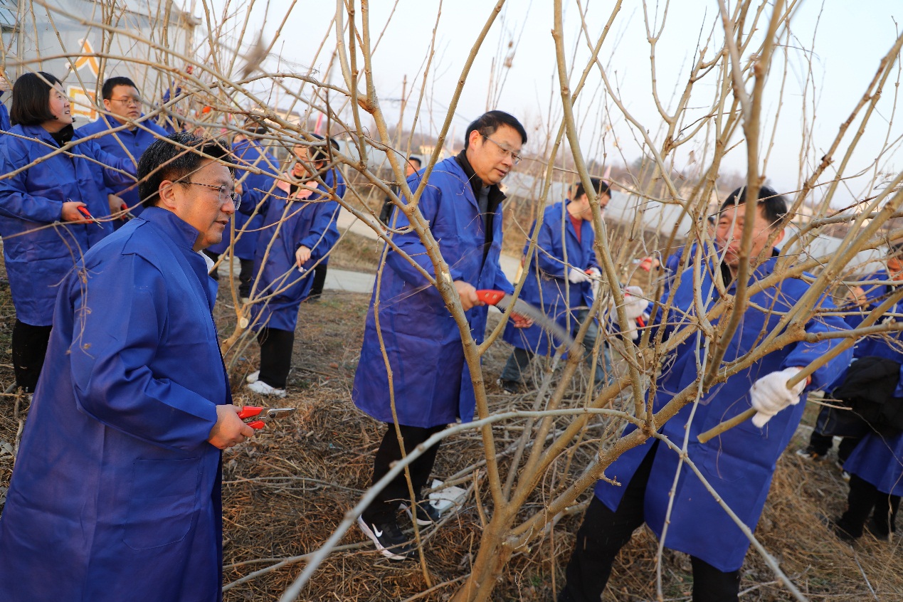 教师对30株桑树进行修剪