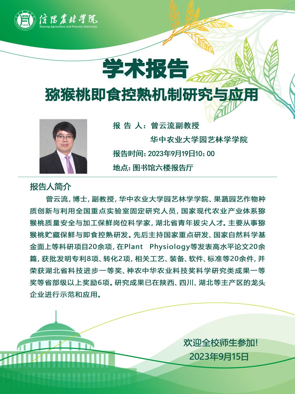 园艺学院“博雅讲堂”--猕猴桃即食控熟机制研究与应用