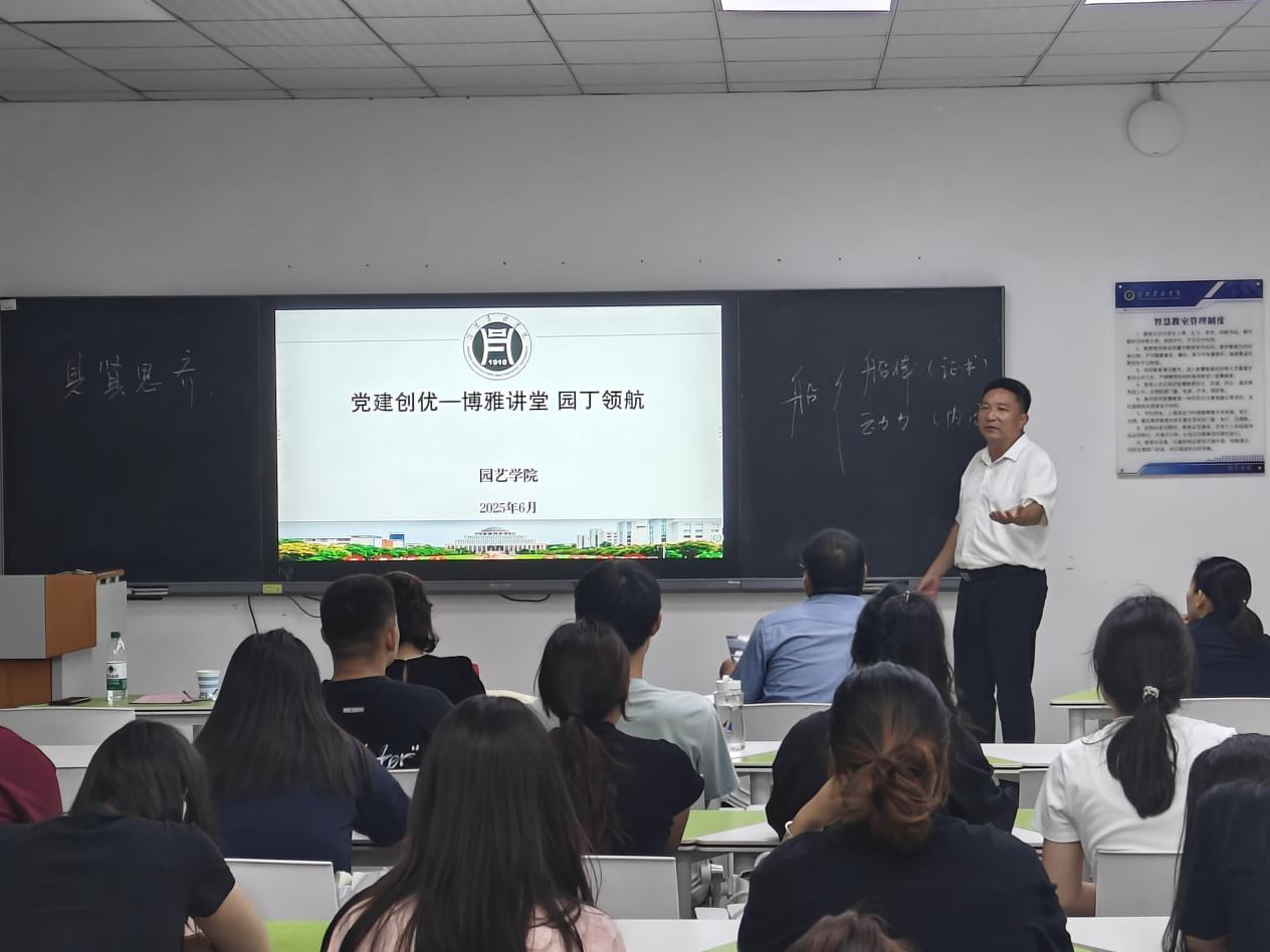 2025年6月18日下午,园艺学院在2B308智慧教室举行“博雅讲堂·园丁领航”系列讲座开讲活动,学院领导班子和师生代表参加了活动。活动由副院长刘松虎主持,二级教授张琰担任主讲。