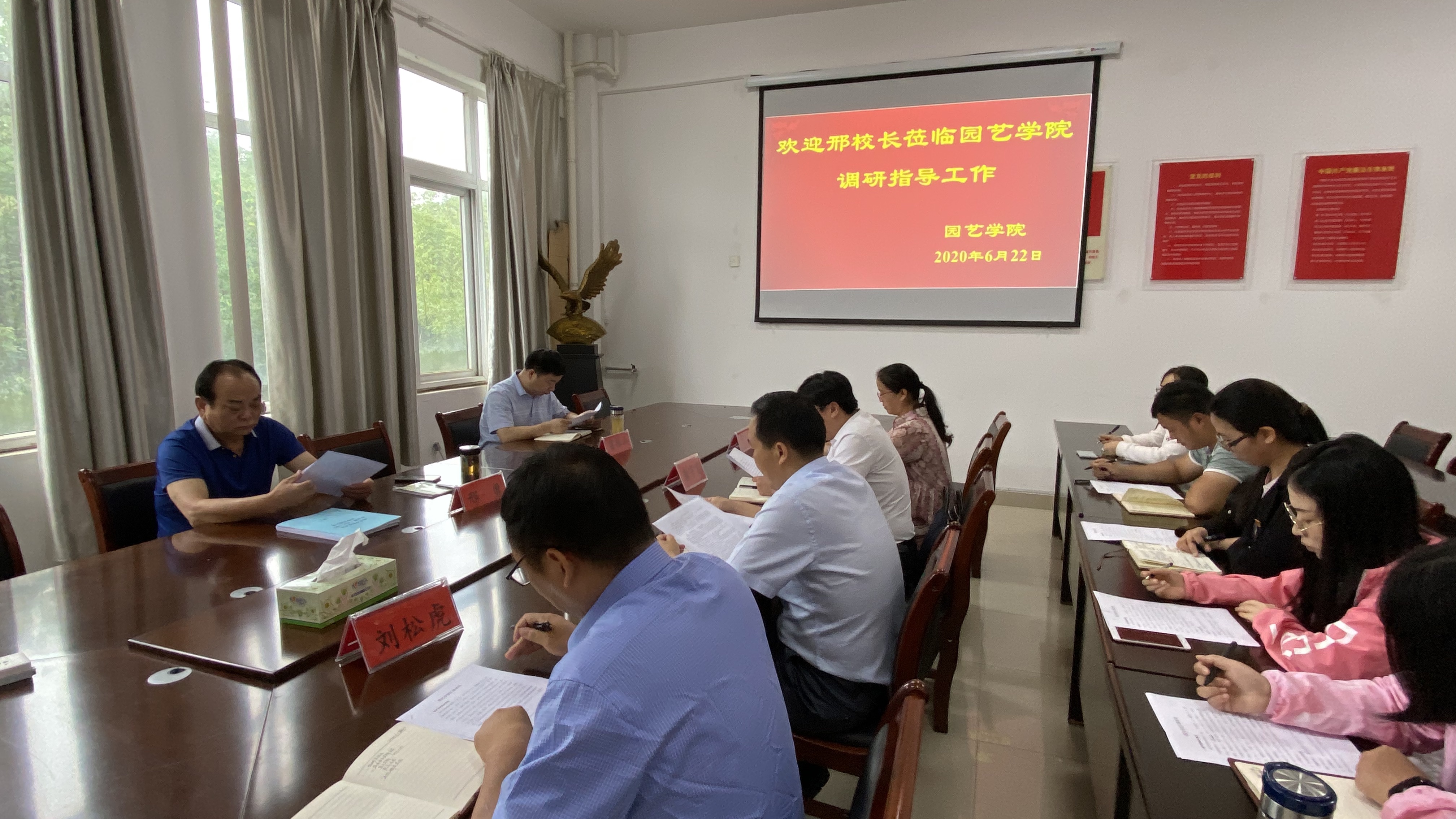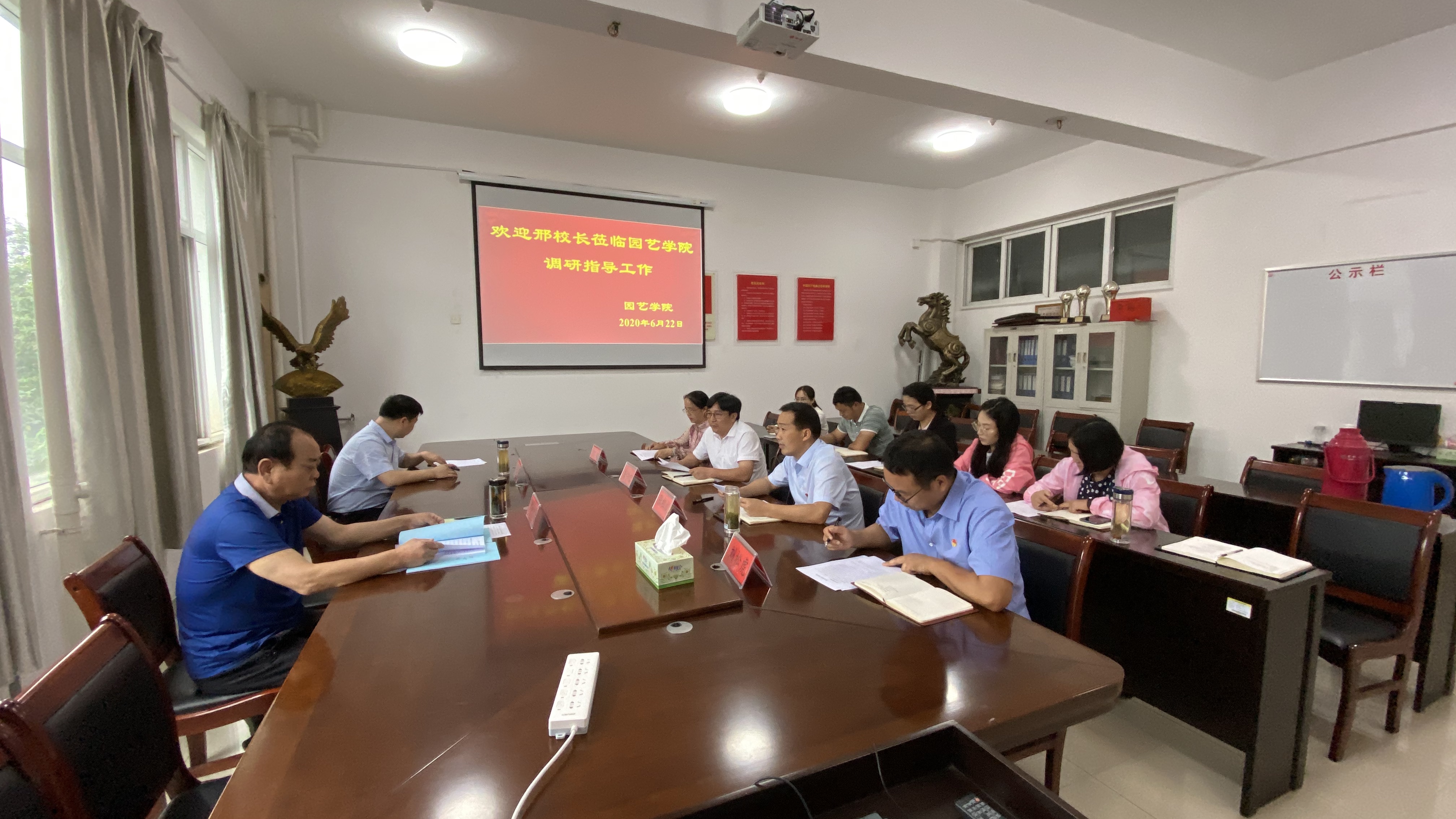 6月22日上午,校长邢勇莅临园艺学院调研指导工作,校办主任雷振山陪同调研。园艺学院党政班子成员、教研室主任及全体科级干部参加调研会。