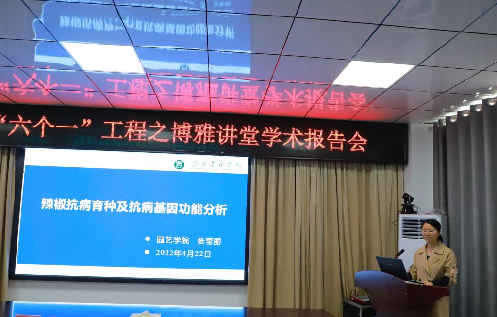 “博雅讲堂”是园艺学院科研氛围营造年活动的重要环节,是园艺学院“六个一”工程之一,目前已累计开展14年近100期。本期博雅讲堂邀请的是我院2021年新引进的高层次人才张莹丽博士,报告主题为《辣椒抗病育种及抗病基因功能分析》。张莹丽博士毕业于西北农林科技大学,2021年11月进入beat365在线平台官网工作,现为园艺学院专任教师,已发表SCI4篇,中文核心期刊等10余篇。张莹丽博士主要围绕我省的辣椒产业发展现状、辣椒抗病育种前沿技术等展开报告内容,重点讲解了“辣椒及其嫁接苗对疫霉菌的防御响应与CaRGA2基因功能分析”的科学研究方法。张莹丽博士的报告深入浅出,与会师生表示受益匪浅。