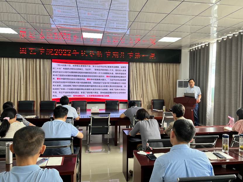 党总支书记张祖成做了总结性发言。他指出,新学期,新气象,每位教师要有主人翁意识,要凝心聚力,要以饱满的热情投入到新一年的工作中,进一步提高政治领悟力、判断力、执行力,营造“学、干、严”的氛围,为学院、学校发展尽职尽责,以实际行动和优异成绩迎接党的二十大胜利召开。