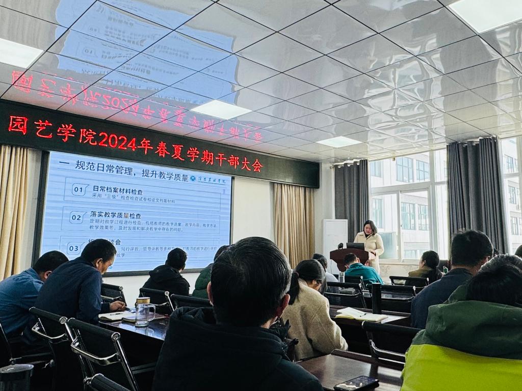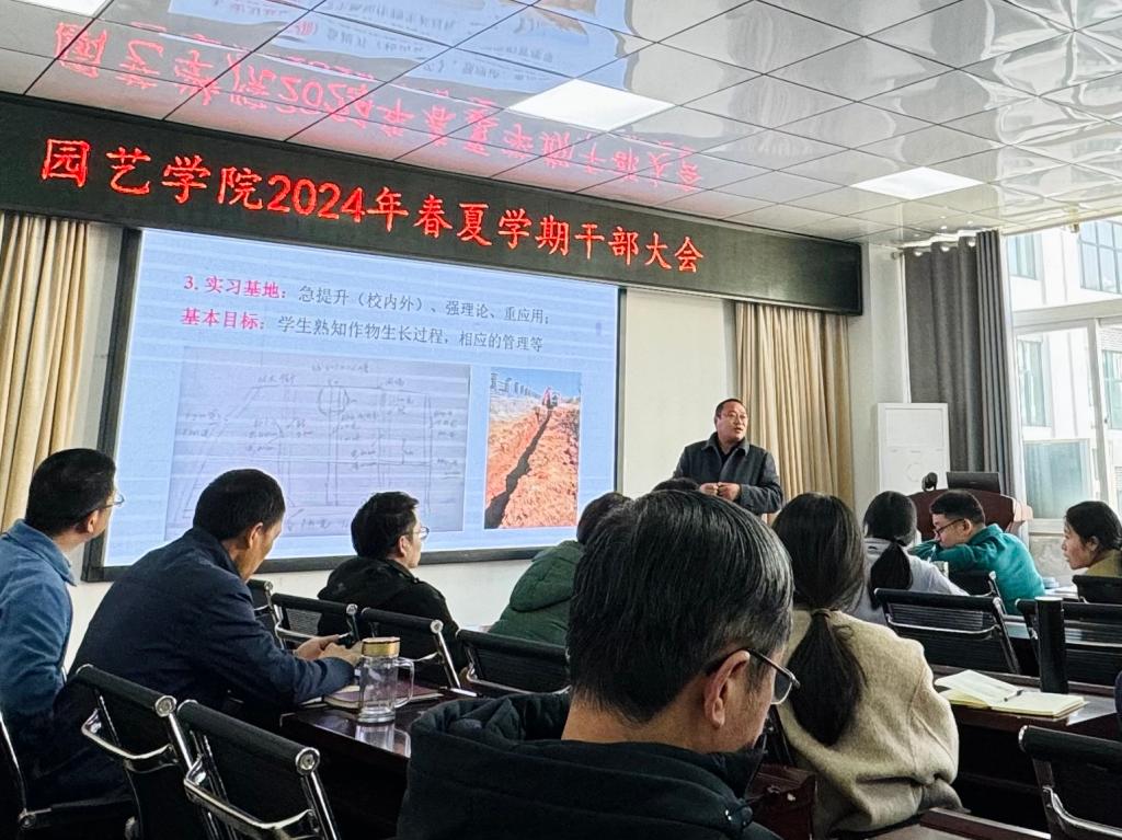 3月19日下午,园艺学院在322会议室召开了2024年春夏学期干部大会。会议由党总支书记杜丽主持,园艺学院全体教职工参加了会议。本次大会旨在总结过去的工作成果,明确新学期的工作目标,进一步激发干部队伍的凝聚力和战斗力,推动园艺学院事业的持续健康发展。