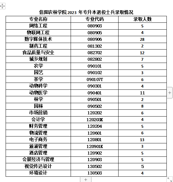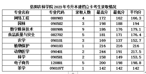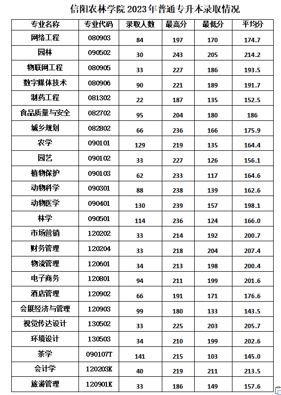 2023年,学校专升本共计录取1804人,其中普通专升本1616人,退役大学生士兵153人,原建档立卡贫困家庭考生35人。男生796人,女生1008人。汉族1788人,回族10人,蒙古族1人,苗族1人,满族2人,朝鲜族1人,土家族1人。中共党员9人,中共预备党员67人,共青团1464人,群众264人。各专业录取情况见下表。