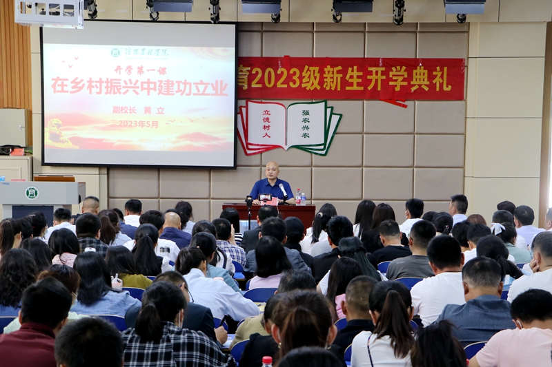 5月13日,beat365在线平台官网在一教E101教室举行了2023级高等学历继续教育新生开学典礼暨“开学第一课”。副校长黄立以《在乡村振兴中建功立业》为题,通过“现场+直播”的形式讲授了开学第一课,并勉励学生在乡村振兴的道路上扛旗争先、建功立业。现场与线上直播平台共计5300余名成教生聆听课程。