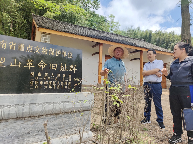 党员们先后来到中共中原中央局新四军五师师部纪念地、四望山革命旧址群、蔡家湾李先念革命旧址参观。寻访了为李先念司令员牵马的蔡大爷的后辈人,他绘声绘色向我们还原了当年的四望山革命斗争。1939年,四望山会议召开,建立了中共豫鄂边区党委,统编了大别山武装,皖南事变后,李先念带领红四军五师一万五千余人在这里坚持敌后抗日,以险要地形为掩体,神出鬼没的牵着鬼子的鼻子走,打的敌人晕头转向,为大革命取得胜利奠定了基础。