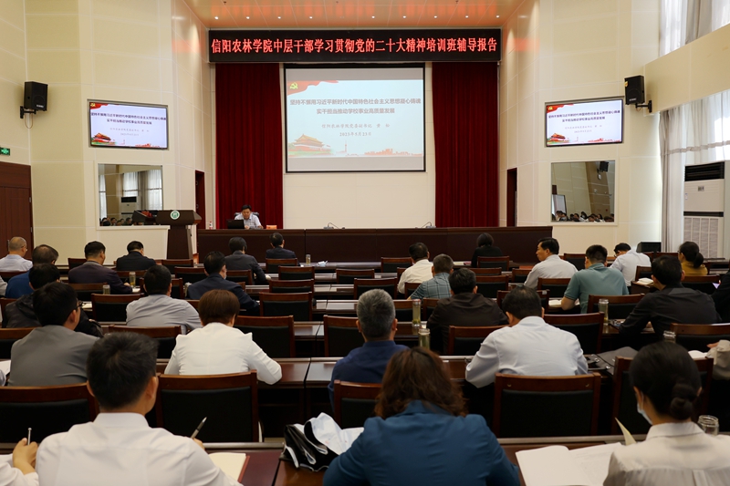 5月23日上午,党委副书记黄松以“坚持不懈用习近平新时代中国特色社会主义思想凝心铸魂,实干担当推动学校事业高质量发展”为题,在图书馆六楼报告厅为全校中层干部讲授主题教育专题党课。