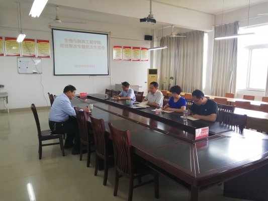 9月10日下午,生物与制药工程学院在会议室2C527召开巡视整改专题民主生活会,院党总支书记茹永强、院长马俊义、副院长王德芝、专职组织员王家东参会,校党委副书记扶庆出席会议。会议由茹永强同志主持。
