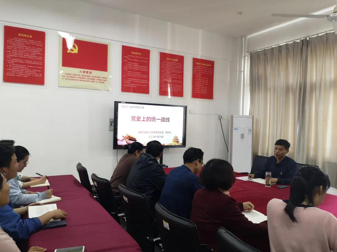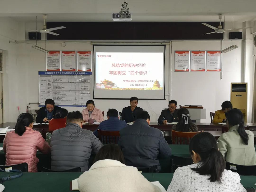 生物与制药工程学院党总支深入学习贯彻习近平总书记在党史学习教育动员大会上的重要讲话精神,坚持把党史学习教育作为全年重大政治任务,精心部署推进,牢牢把握“学史明理、学史增信、学史崇德、学史力行”要求,突出“五个注重”,抓实“规定动作”,抓准“自选动作”,重点提高党史学习教育质量,积极促进学院改革发展、迎评促建、为师生办实事解难题的效果。
