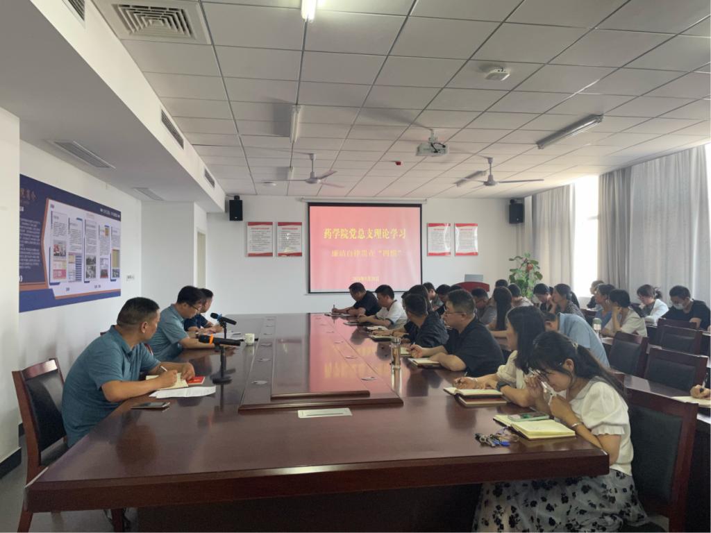 在纪律党课中,魏宗烽通过对慎始、慎微、慎独和慎友的解读,要求党员同志要永葆初心,常怀“四慎”,常怀敬畏,常念不足。就如何以党的纪律建设新成效为药学院高质量发展引航护航,魏宗烽提出三点要求:一是突出思想引领,充分认识纪律建设的重要性和必要性。要加强理想信念教育,将党章党规作为三会一课的必修课,教育引导党员干部和师生自觉将党的纪律内化为日用而不觉的行为准则。二是坚持问题导向,着力提高纪律建设的针对性和实效性。要强化自我和他人监督,常态长效纠治“四风”,一体推进党风政风、师德师风、校风学风建设。三是强化纪律执行力,切实增强纪律约束力和制度执行力。学院教师要始终贯彻“严”这一政治基因,正确处理好公与私、义与利、廉与腐、俭与奢、苦与乐、亲与清的关系。