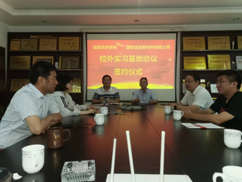 会后,段鸿斌和濮阳市中科绿色化工公共研发中心、濮阳润途新材料有限公司两家企业代表,分别签订了校外实习基地协议。