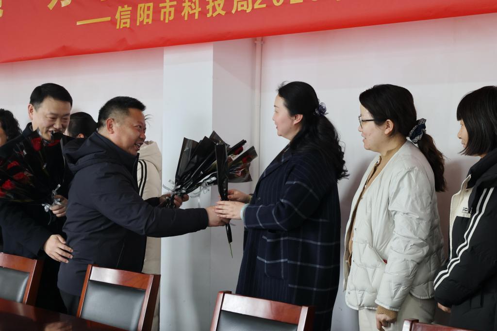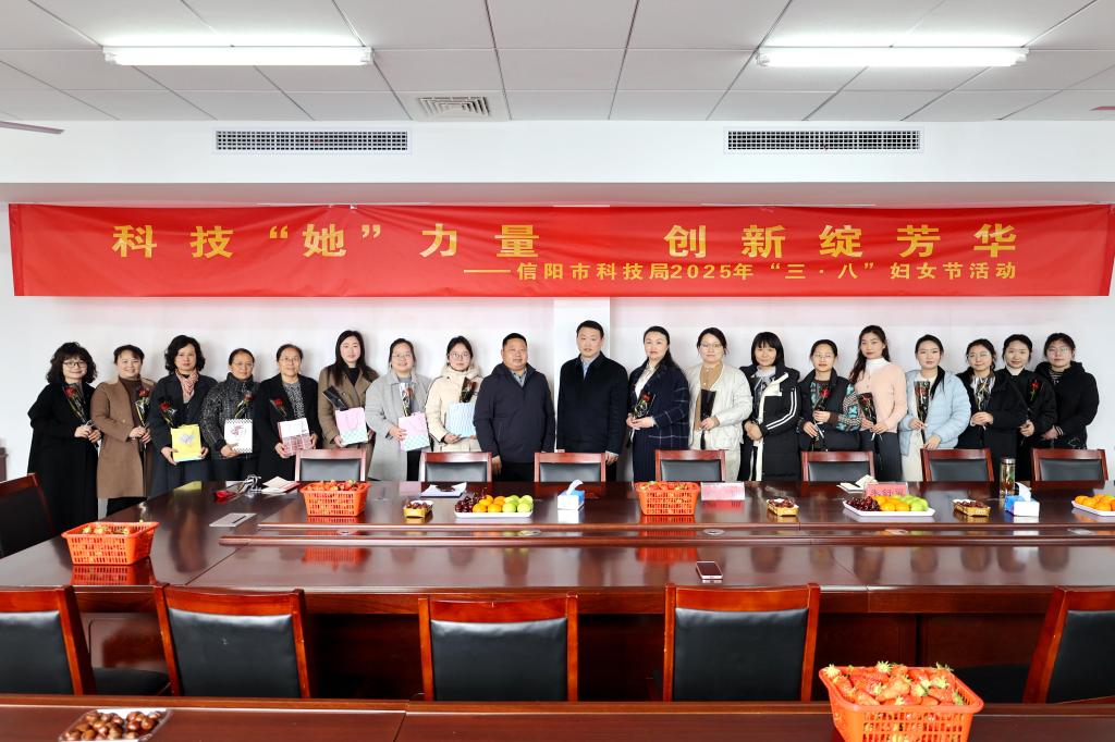 为迎接第115个“三八”国际劳动妇女节,展现新时代女性科研工作者的卓越风采,搭建政校协同交流平台,3月7日,我院联合信阳市科技局在学院415会议室举办“科技‘她’力量 创新绽芳华”主题交流活动。信阳市科技局党组成员、副局长卢照及学院全体女教师参加活动。