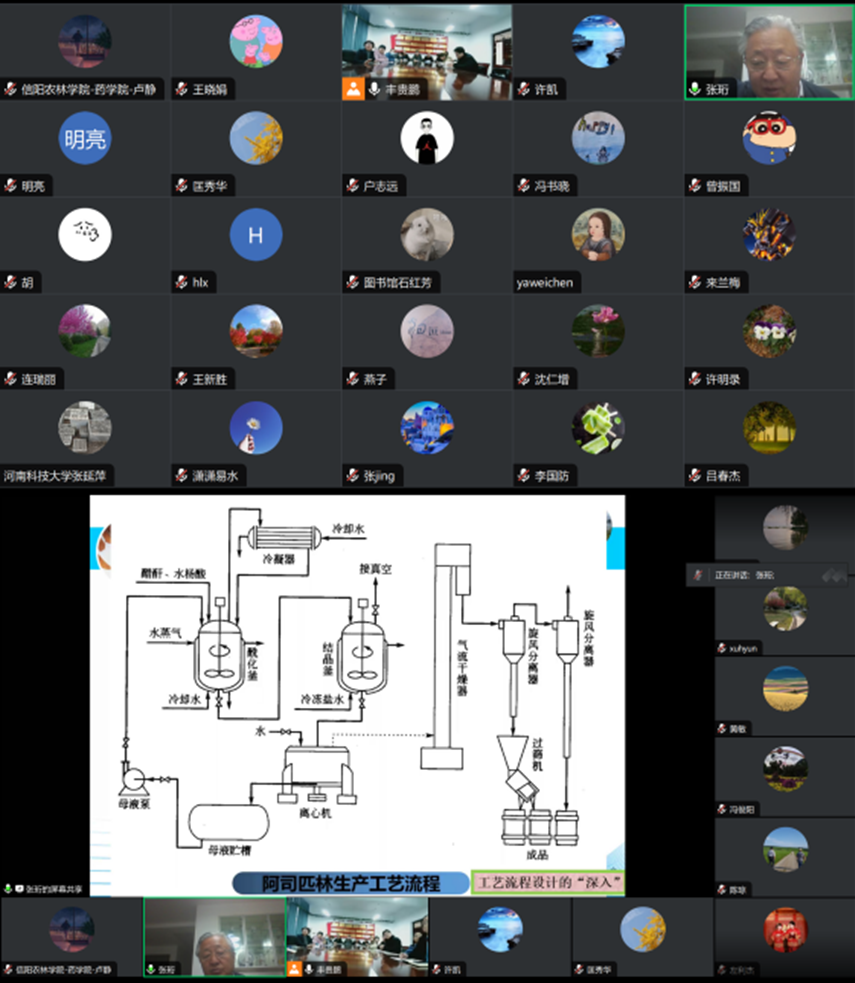 为提高青年教师专业工程能力,保证制药工程专业课程设计、毕业设计作品质量,2023124日下午制药工程教研室专任教师线上参加了由新乡学院药学院主持的线上虚拟教研室教研活动。活动邀请武汉工程大学张珩教授进行线上毕业设计培训,另有四川大学、郑州大学、许昌学院等院校参加此次线上培训。